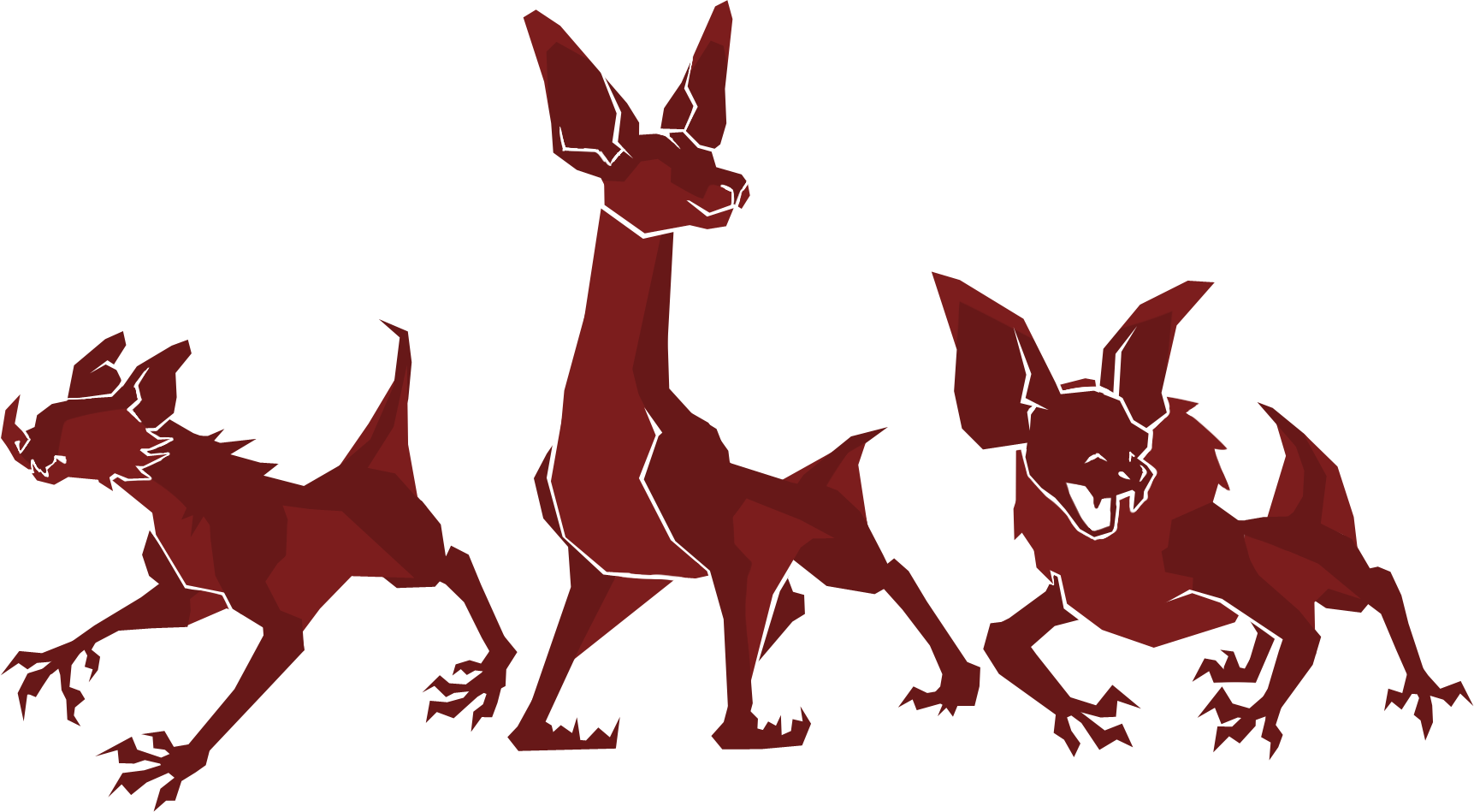 These vampires due to their infected status their bodies form a poor attempt at a bat form using random traits from land mammals of numerous types.Traits you will not see with them is horns, large tusks, or any traits from other types of animals such as reptiles, nor will you see them be able to have more than 4 limbs.